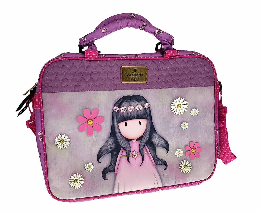 Τσάντα laptop με τα αγαπημένα σχέδια της Santoro Gorjuss. Αποτελείται από μια βασική θήκη που κλείνει με φερμουάρ και μια βοηθητική θήκη εσωτερικά.Εχει θέση για λάπτοπ έως 26 x 35 εκ με ειδική επένδυση για έξτρα προστασία.